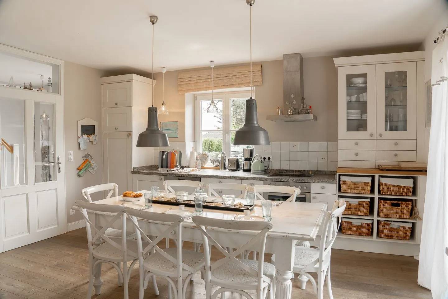 Die helle, offene Küche ist mit modernen Geräten ausgestattet und lässt keine Wünsche offen. Ein Cerankochfeld, Backofen, Mikrowelle, Geschirrspüler und Kühlschrank mit Gefrierfach ermöglichen Ihnen, sich kulinarisch auszutoben. Der große Essbereich und die Sofaecke im Wohnzimmer bieten viel Platz für gesellige Abende. Hier steht Ihnen auch ein Fernseher für gemütliche Filmabende zur Verfügung.
