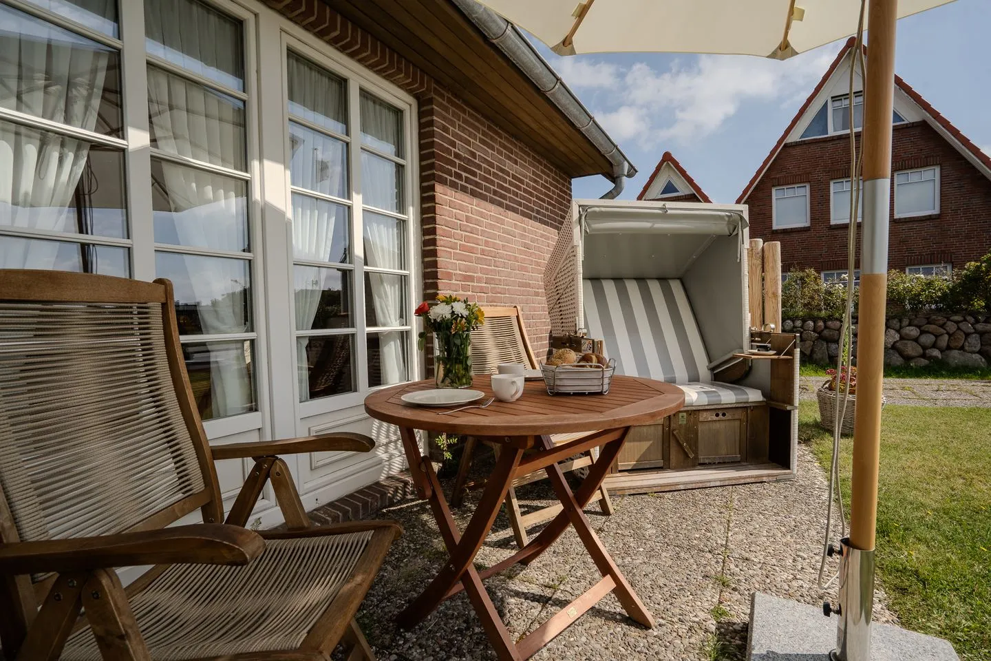 Für den entspannten Aufenthalt im Freien sorgt eine möblierte Terrasse mit Zugang zum Garten. Hier laden Liegewiese, Gartenmöbel und ein Strandkorb zum Verweilen ein. Ihr Fahrzeug stellen Sie bequem auf dem zur Unterkunft gehörenden Privatparkplatz ab. Haustiere sind im Appartement "Diedrichsen 1 willkommen.