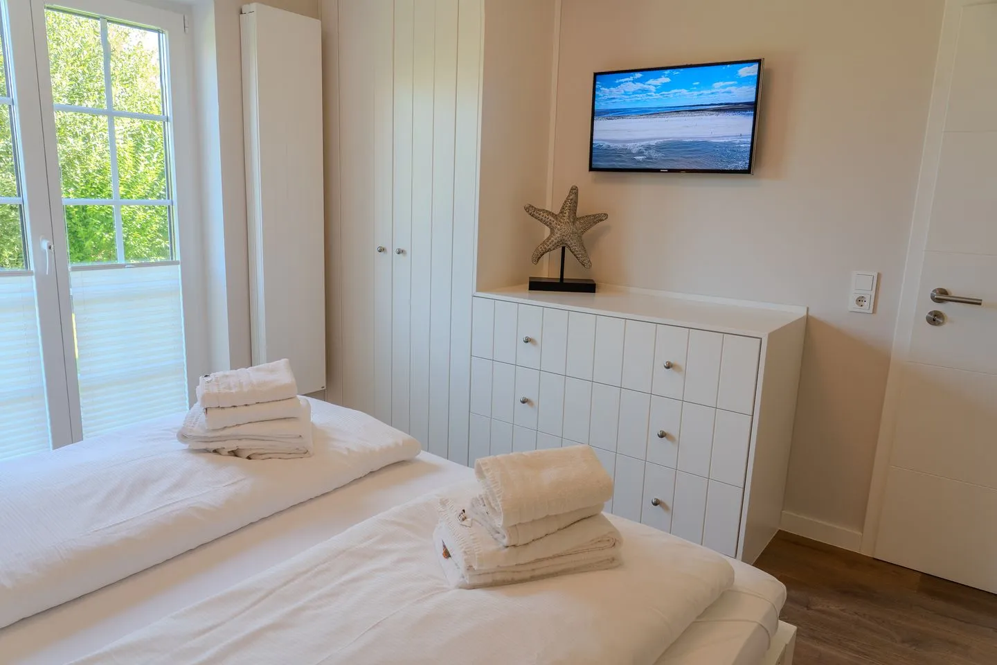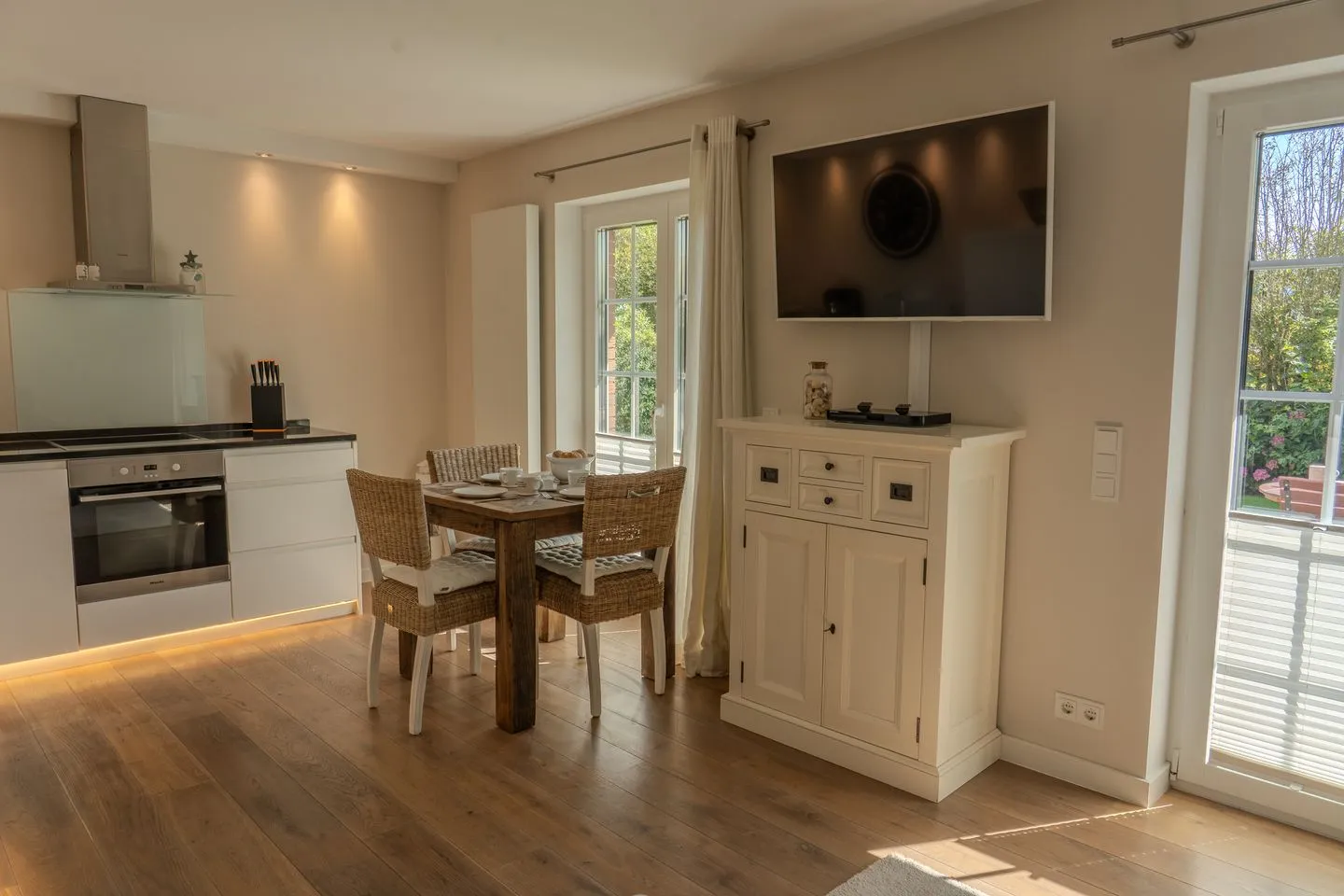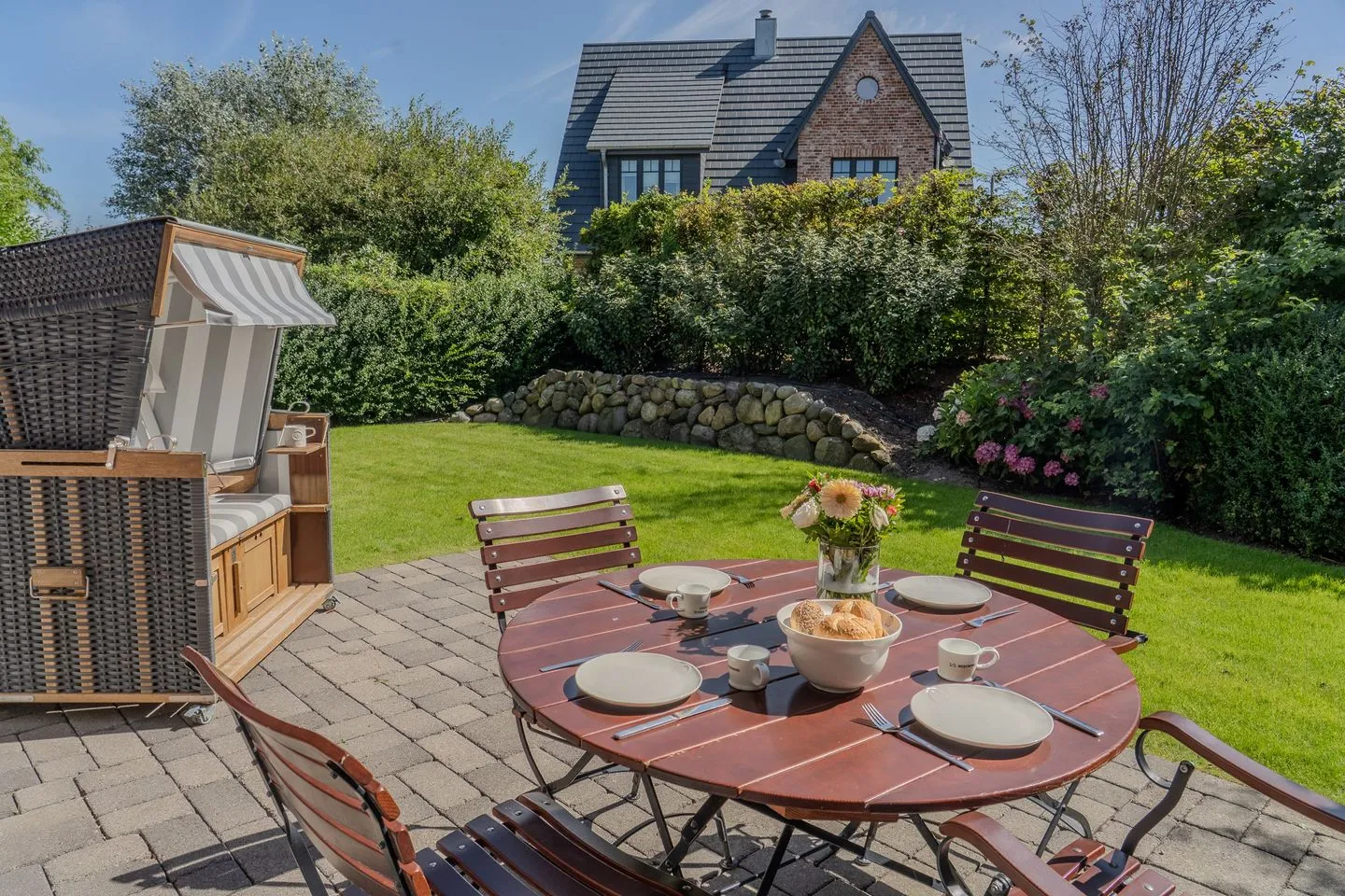 Genießen Sie den eigenen Zugang zur Terrasse mit Gartenblick, ausgestattet mit Gartenmöbeln und Liegewiese – ideal zum Entspannen oder für sonnige Stunden im Freien. Ein Strandkorb lädt zum Verweilen ein. Für Outdoor-Aktivitäten empfiehlt sich zudem die Umgebung mit attraktiven Möglichkeiten zum Spazierengehen, Radfahren, Schwimmen und Joggen. Wellnessangebote wie Massagen und Kosmetikbehandlungen sind leicht erreichbar.