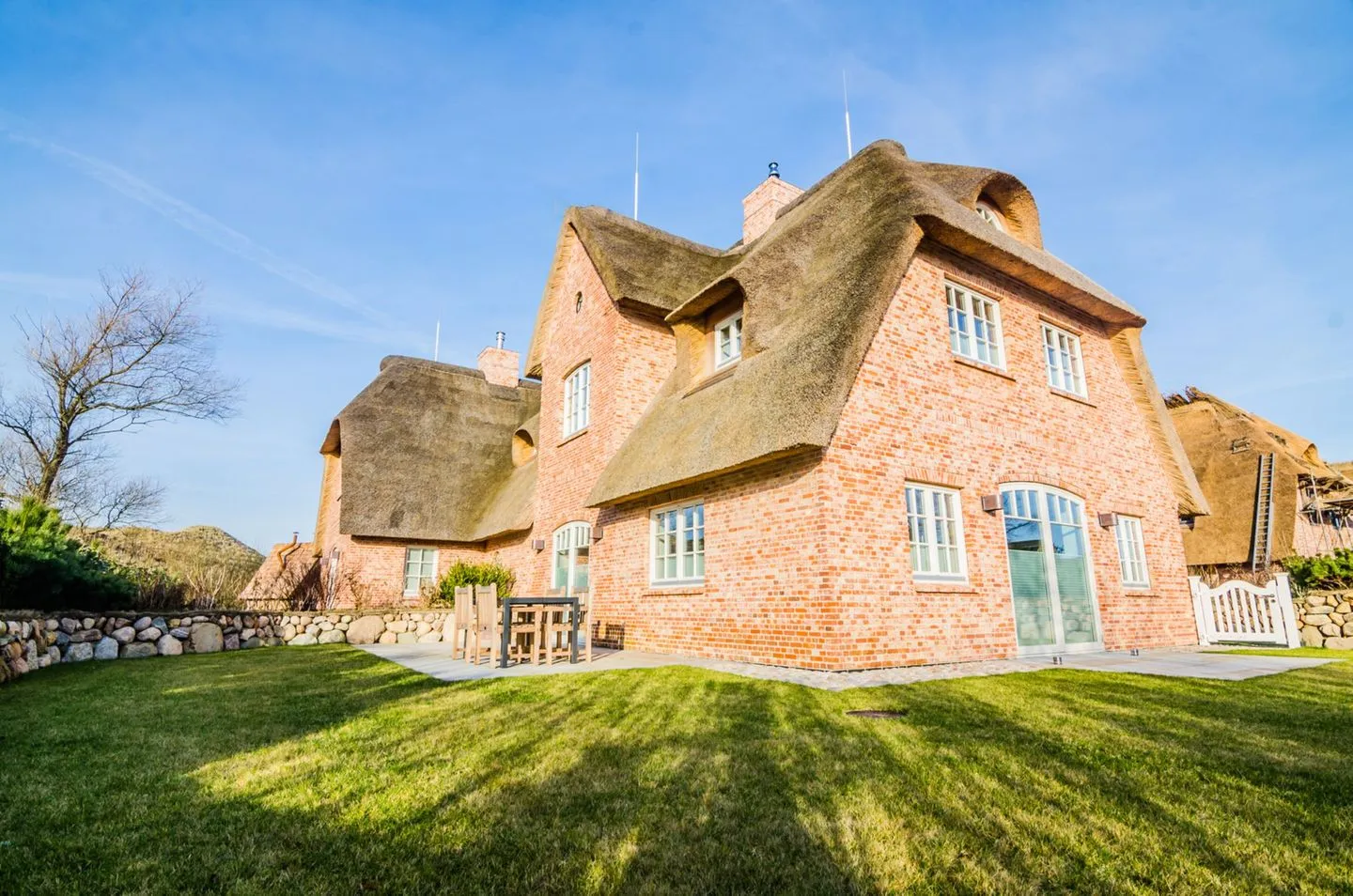 Zum Haus gehört eine eigene, möblierte Terrasse mit Blick in den gepflegten Garten. Entspannen Sie in bereitgestellten Gartenmöbeln oder genießen Sie sonnige Stunden im eigenen Strandkorb. Die Umgebung lädt zu ausgedehnten Spaziergängen, Radtouren oder Joggingrunden durch die Sylter Natur ein. In der Nähe finden Sie zahlreiche Möglichkeiten zur Freizeitgestaltung: Neben der Nähe zum Sandstrand (1600 m) stehen Ihnen Einkaufsmöglichkeiten (Supermarkt, 1600 m), Restaurants (1300 m), Arzt und Bank zur Verfügung. Ein eigener Privatparkplatz direkt am Haus sorgt dafür, dass Sie sich um Ihr Fahrzeug keine Gedanken machen müssen.