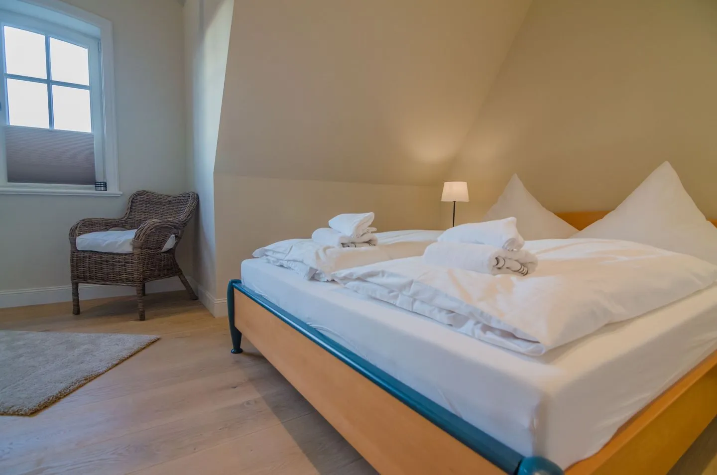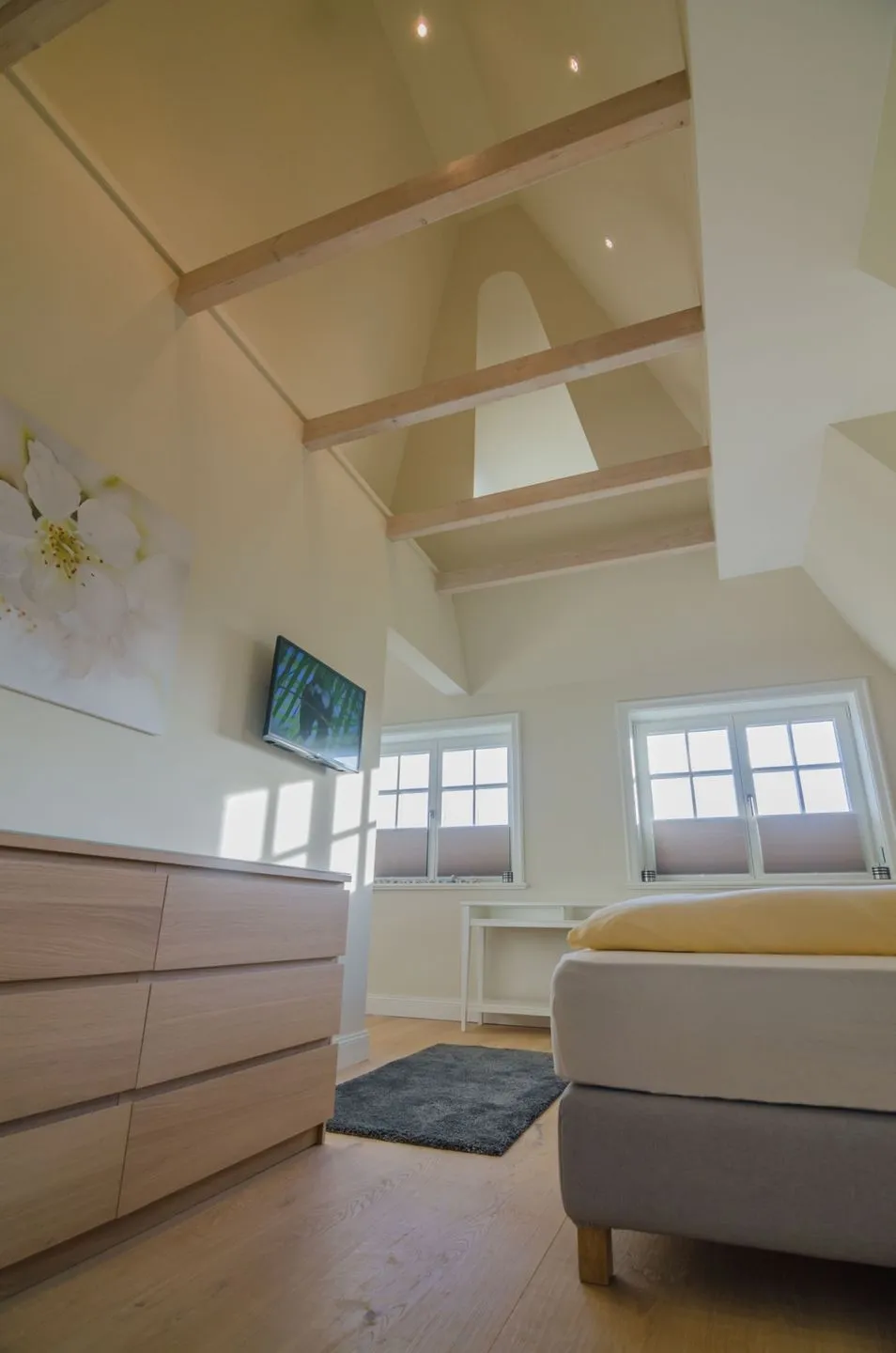 Das Badezimmer ist hochwertig ausgestattet: Neben zwei bodengleichen Duschen steht Ihnen auch eine Badewanne zur Verfügung. Zusätzlich gibt es ein separates Gäste-WC. Für Ihren Aufenthalt sind praktische Ausstattungsdetails wie ein Waschtrockner (mit Eigennutzung), Wäscheständer, Bügeleisen und Staubsauger vorhanden, sodass Sie während Ihres Urlaubs unabhängig und flexibel bleiben.