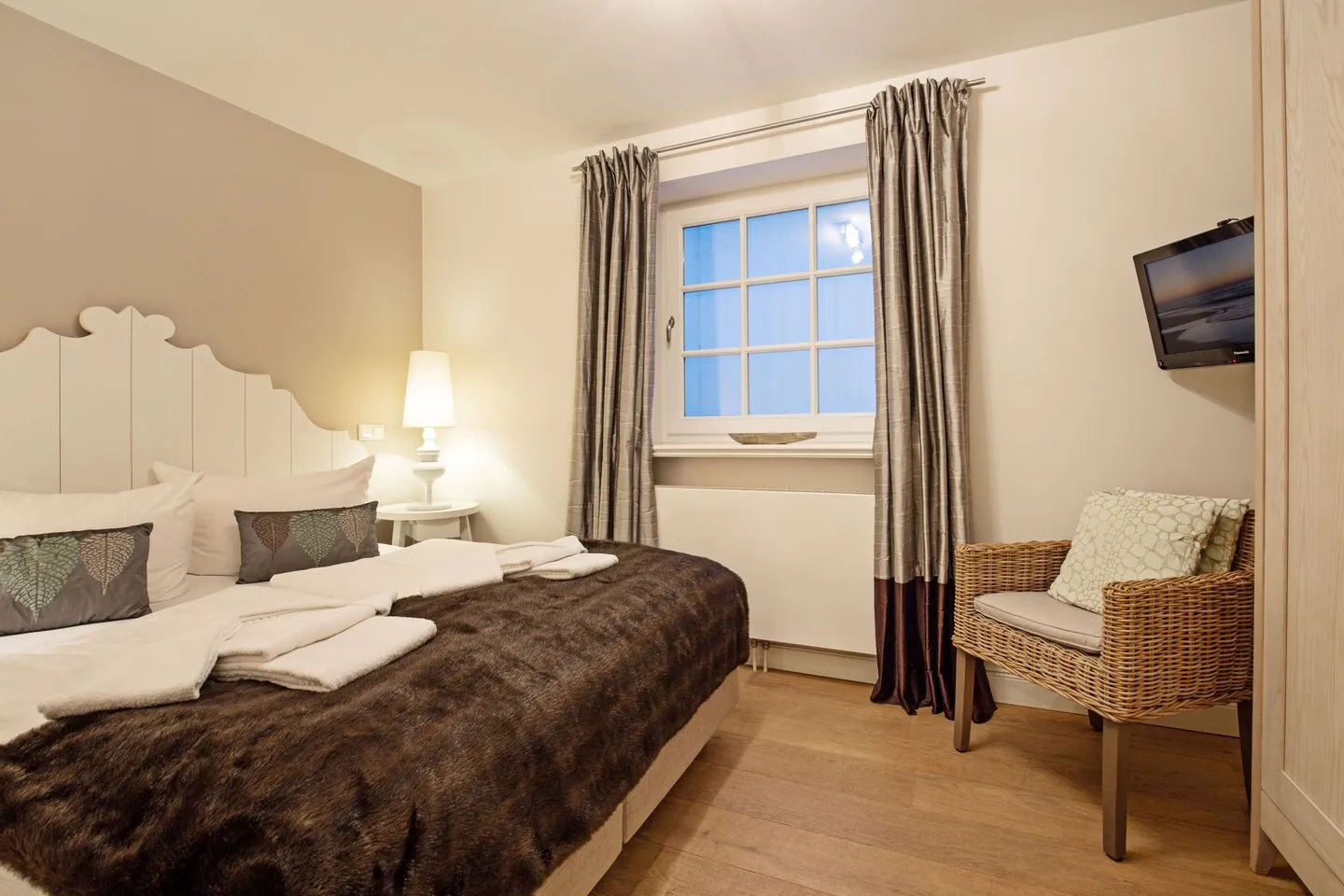 Die beiden Schlafzimmer verfügen jeweils über Laminatboden und bieten angenehme Rückzugsmöglichkeiten für die Nacht. Beide Badezimmer sind modern gestaltet und verfügen über bodengleiche Regenduschen sowie eine Badewanne. Für zusätzlichen Komfort sorgen Haartrockner, Spiegel und Fenster in den Badezimmern. Waschmaschine, Bügelbrett, Bügeleisen, Staubsauger und Wäscheständer stehen zur Eigennutzung bereit.