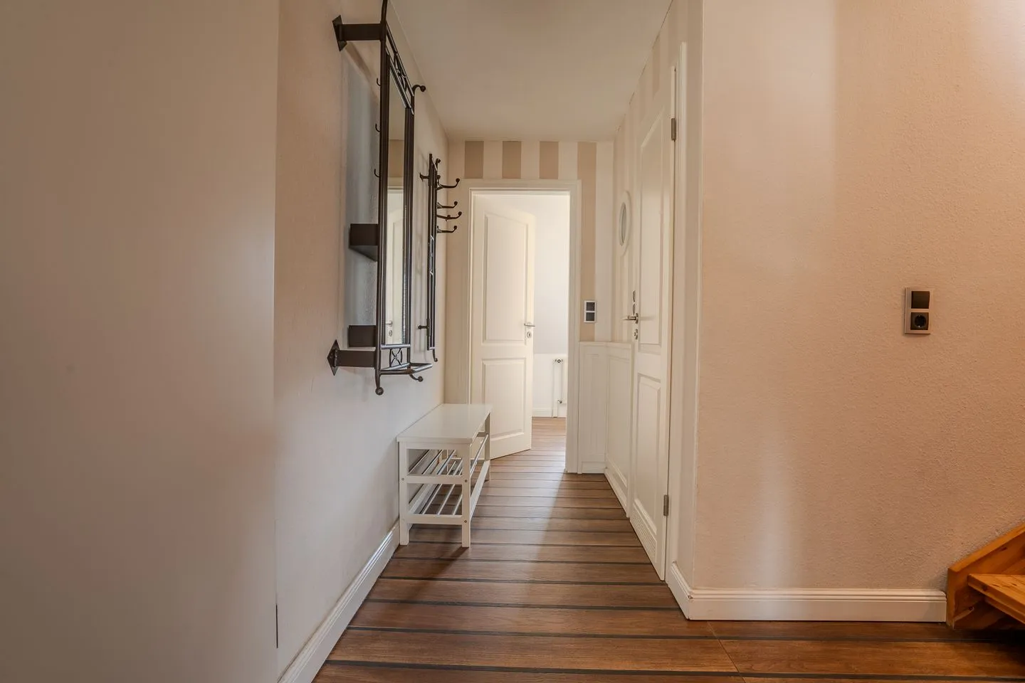 Die Ausstattung der Unterkunft lässt keine Wünsche offen. Eine vollständig eingerichtete Kochnische mit modernen Geräten, darunter ein Induktionsherd, Backofen, Kühlschrank mit Gefrierfach, Mikrowelle, Kaffeemaschine sowie eine Espressomaschine, sorgt dafür, dass Sie Ihre Lieblingsgerichte auch im Urlaub zubereiten können. Der Essbereich mit Esstisch sowie die gemütliche Sofaecke bieten Ihnen den Platz, um das Zusammensein zu genießen und schöne Abende zu verbringen. In den zwei Schlafzimmern mit Laminatboden finden Sie erholsame Nächte vor, während das Badezimmer mit bodengleicher Dusche, WC, Waschbecken und Kosmetikspiegel ausgestattet ist, um Ihren Komfort zu erhöhen.