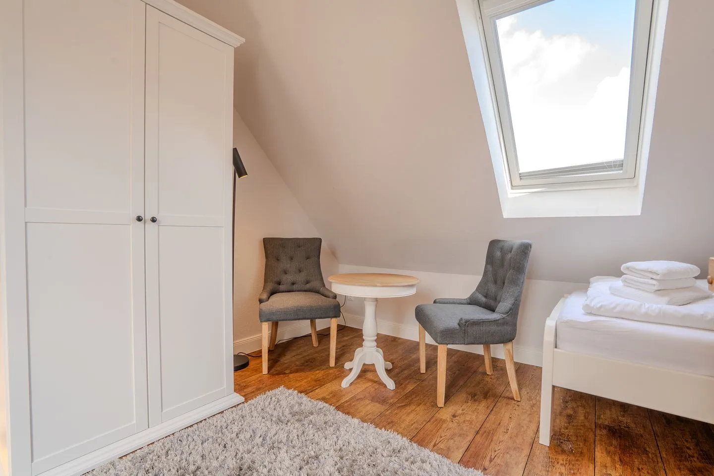 Zu den weiteren Annehmlichkeiten der Ferienwohnung gehören kostenfreies WLAN, eine eigene Garderobe, eine Kommode sowie Gartenmöbel, die auf dem vorhandenen Balkon für entspannte Stunden im Freien sorgen.