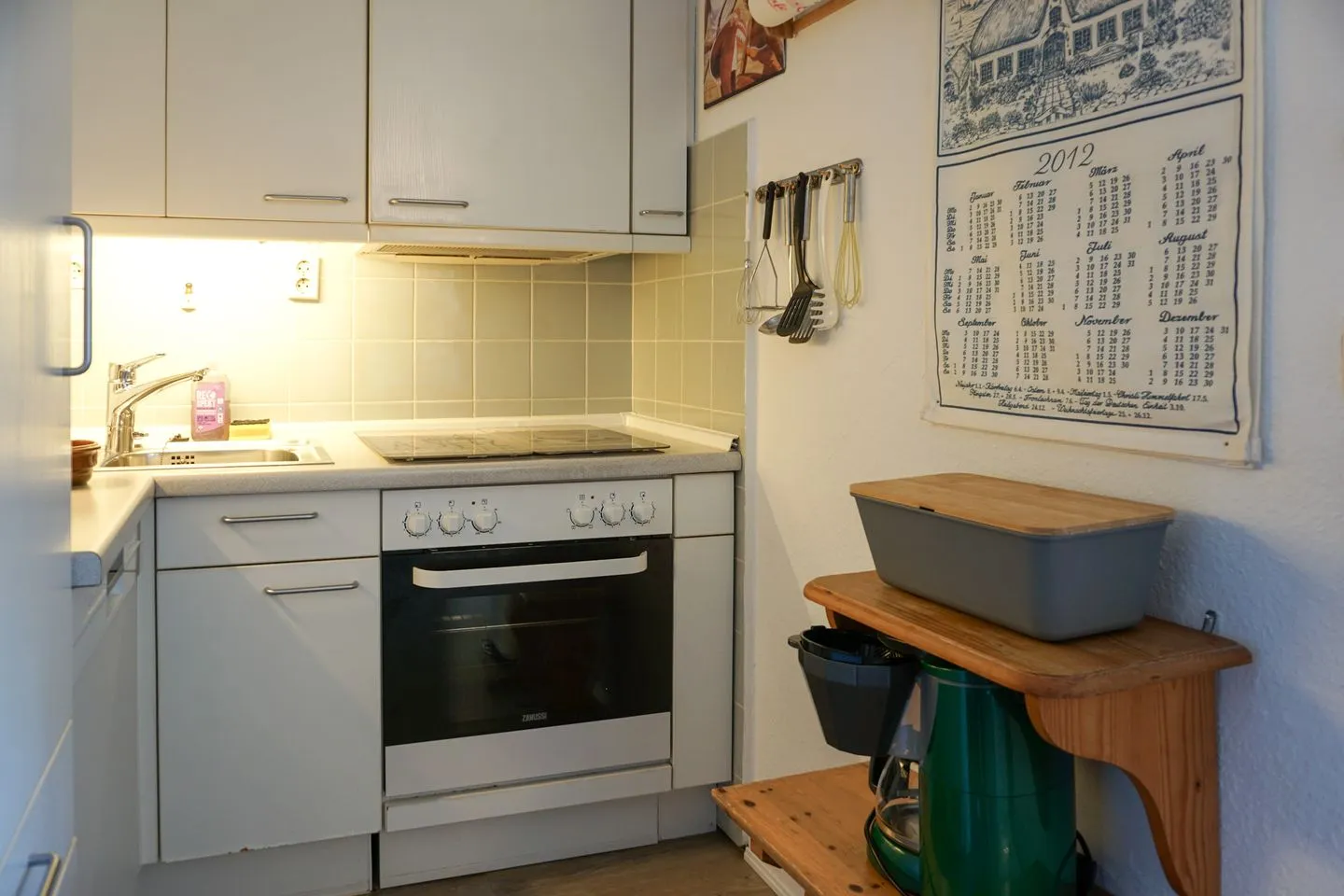 Der offen gestaltete Küchenbereich ist optimal in das Wohnzimmer integriert und überzeugt durch eine umfassende Ausstattung. Eine vollwertige Küche mit 4-Platten-Herd, Mikrowelle, Wasserkocher, Toaster, Kaffeemaschine, Kühlschrank mit Gefrierfach, Geschirr, Besteck und Küchenutensilien lässt keine Wünsche offen. Dadurch können Sie sich sowohl kleine Snacks als auch komplette Mahlzeiten problemlos selbst zubereiten. Für Ihren Komfort ist auch ein Abfalleimer vorhanden.
